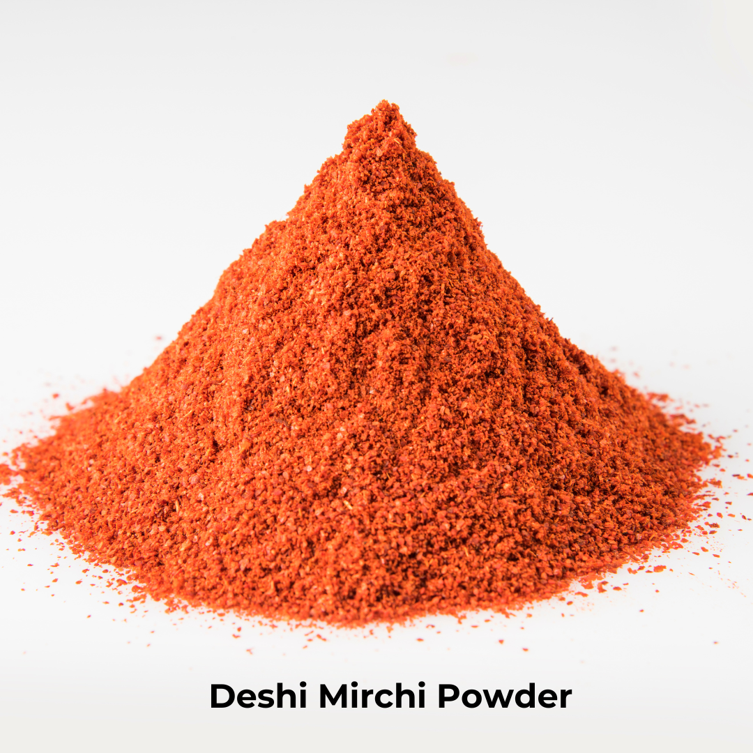 Spice up your dishes with our Desi Chilli Powder, made from handpicked, sun-dried Indian red chillies. Finely ground to preserve its bold color and natural pungency, this chilli powder delivers the perfect balance of heat and flavor — just like homemade masalas.